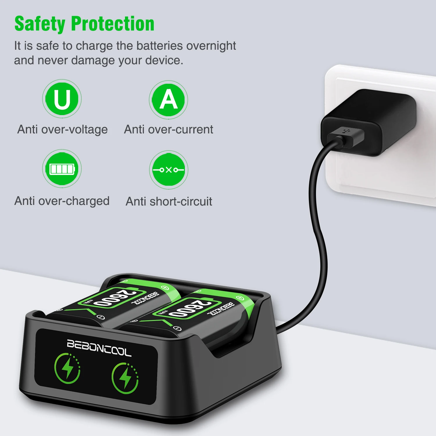 BEBONCOOL 2 x2600mAh Rechargeable Battery For Xbox Series X/S/Xbox One S/X Controller Battery For Xbox One + USB Battery Charger
